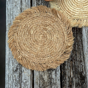 These natural woven placemats add a textural tropical touch, giving your home that relaxed island feel. They are handmade from raffia in Bali by local artisans.