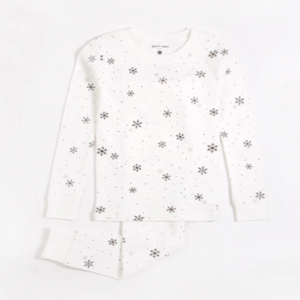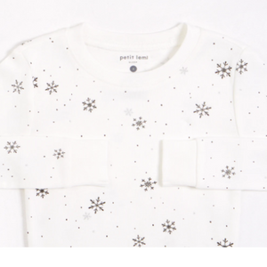 These snowy PJs are perfect for a family duvet day in the Winter. The white PJ set features a long-sleeved top and matching pants, both with our all over Snow Flake pattern.