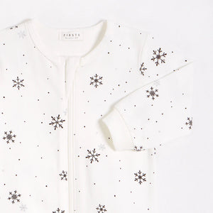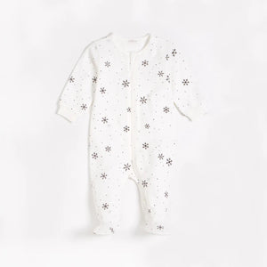 This Wintry sleeper with snow flake print is perfect for your new arrival. Made from organically grown cotton jersey the sleep-suit is incredibly soft and gentle on their skin – giving them the best chance of a great night’s sleep. With elasticated cuffs and integrated feet, the one piece is perfect for keeping warm in the stroller on chilly walks. The full-length zipper down the front makes diaper changing on the go quick, easy and mess free.