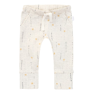 How sweet is that sunny print? These adorable trousers from the Noppies Baby collection feature an elasticated waist with a tie ribbon and handy wider cuffs, which make sure the trousers don’t creep up. The tie ribbon has been made in such a way that it can’t get pulled out whilst tightening, handy! The stretchy fabric is lovely and soft on your baby’s skin.