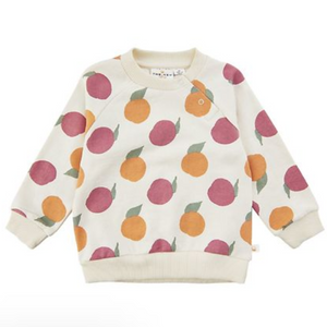 Nice The New Siblings sweatshirt in off white, with a print of oranges in orange and pink all over.