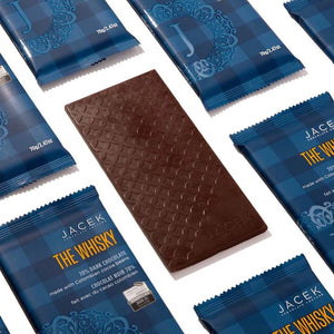 Jacek has soaked their 70% Colombian cocoa beans with peated Scotch Whisky. Kilts down, this bar is perfect for any scotch aficionado, chocolate lover akin.