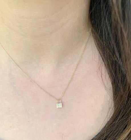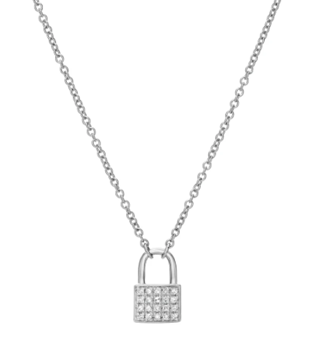 $9.74 CAD $12.99 CADPetit Pave Padlock Necklace- 14K White Gold