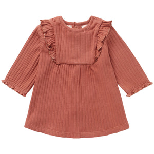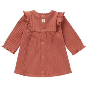 This adorable dress features ruffles on the chest and sleeves, which have been finished off with elastic and a wavy glittery edge. So cute! There are press studs at the top of the back, which makes getting dressed a great deal easier. There’s plenty of stretch in the soft ribbed fabric, making it extra comfortable for your little one.